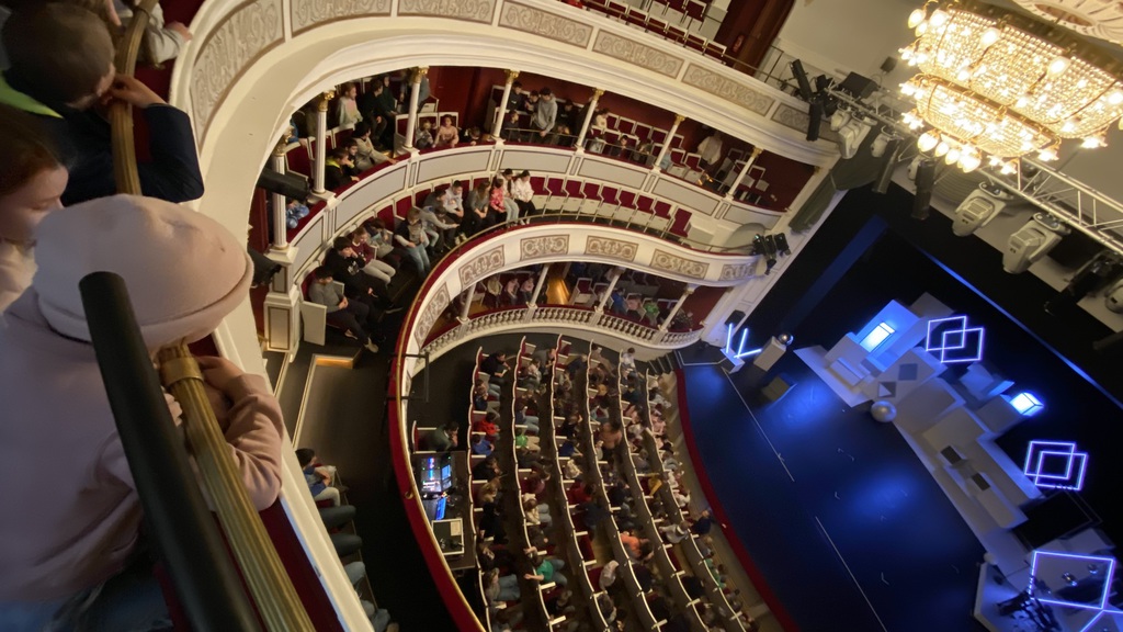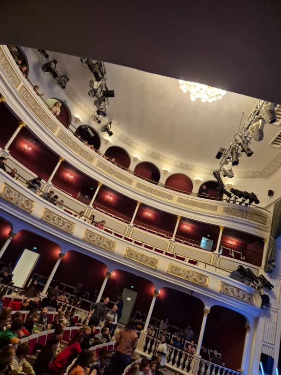 Ein großer Tag mit viel Aufregung stand am 14.12. bevor: die ganze Schule macht mit allen Schülern und Lehrern beider Standorte einen Ausflug ins Staatstheater in Darmstadt!